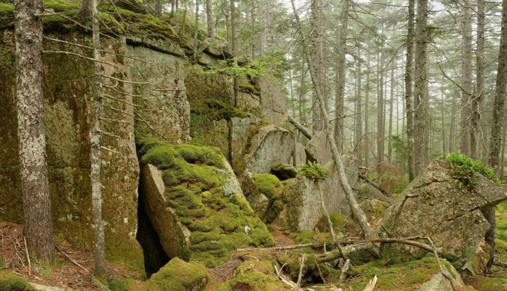 Our first hike was Tumbledown Mountain. This hike was not super interesting but had a fun little scramble section. Our next stop was an old growth forest area near Black Mountain. This was probably the best of several old growth forest hikes that we did on this trip. We used the website Old-Growth Forest Network to find places that probably haven’t been logged. They are usually very small chunks of land and vary a lot. Sometimes they look a lot like a normal forest, but others have a distinct feel with fewer bushes and small plants, bigger trees, more ferns and lichen, and just feel old and quiet.