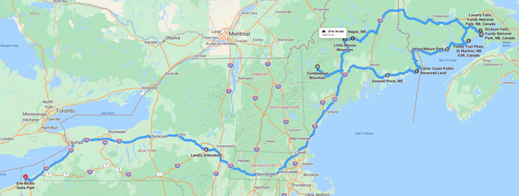 Our last hike in Maine was another old growth forest. We spent a few more days in Massachusetts before heading back to Colorado. On the way home, we stopped in New York to hand deliver a custom painting that Kira did for a client. We also hit three more old growth forests. One in MA, one in NY and one on the shore of Lake Erie. Then it was a couple days of driving through the Midwest before getting back to my mom’s house in Loveland.