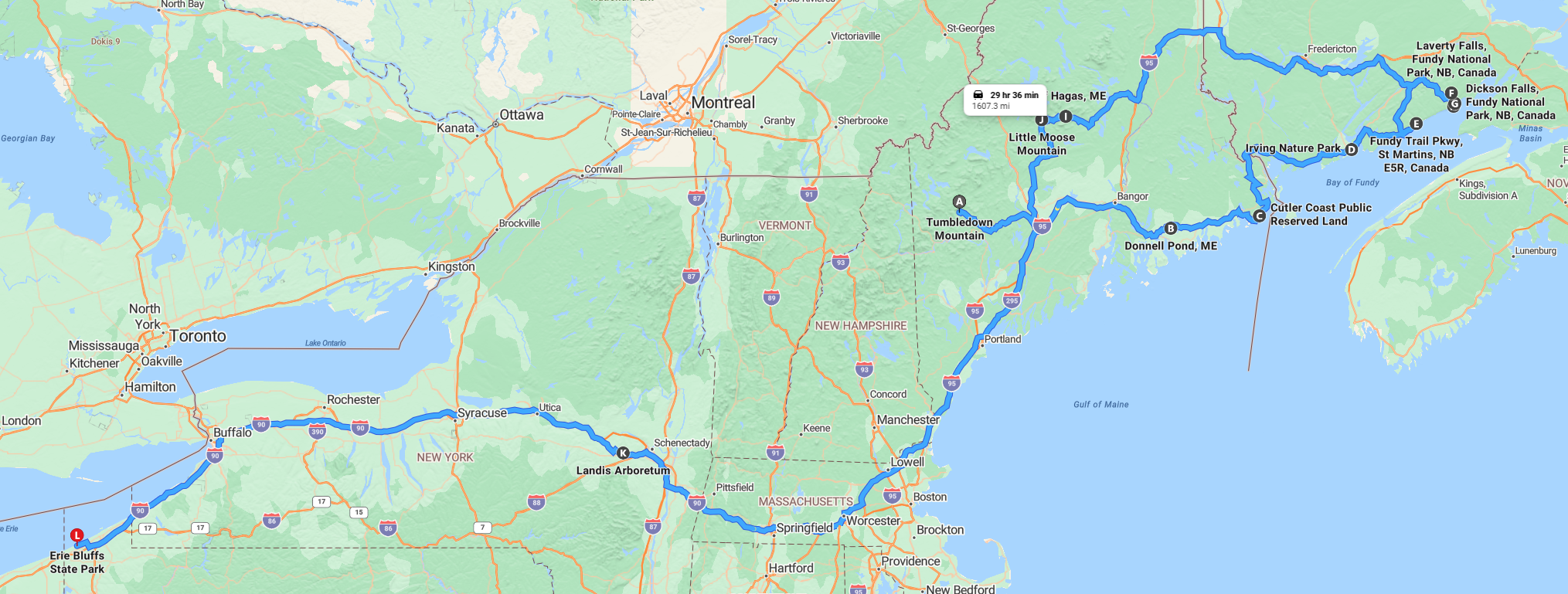 Our last hike in Maine was another old growth forest. We spent a few more days in Massachusetts before heading back to Colorado. On the way home, we stopped in New York to hand deliver a custom painting that Kira did for a client. We also hit three more old growth forests. One in MA, one in NY and one on the shore of Lake Erie. Then it was a couple days of driving through the Midwest before getting back to my mom’s house in Loveland.